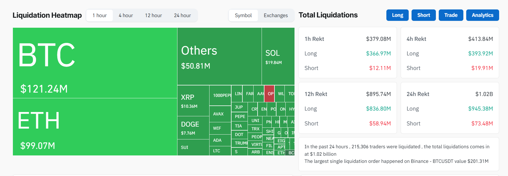Coinglass verilerine göre, son 24 saat içinde kripto para piyasasından neredeyse 1 milyar Dolar tasfiye edildi ve tasfiyelerin çoğu son bir saat içinde gerçekleşti. Genel piyasa %8 düştü.