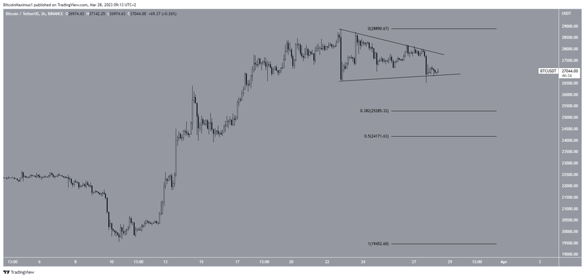 Lider kripto para birimi, 22 Mart’tan bu yana simetrik üçgen içinde sıkıştı. Simetrik üçgen ise nötr bir formasyondur.