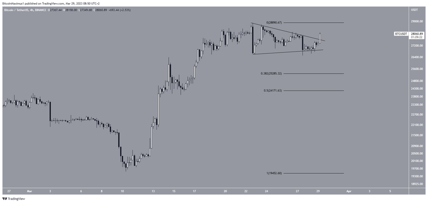 BTC fiyatı, şu anda üçgeni kırmaya çalışıyor . Eğer başarılı olursa, 29.000 doları geçecektir.