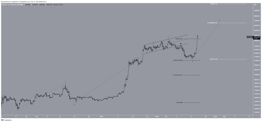 Bitcoin fiyatı, hızlı bir yükseliş göstererek 24.900 dolara kadar ulaştı. Şu anda BTC, yükseliş hareketinin beşinci ve son dalgasında yer alıyor.
