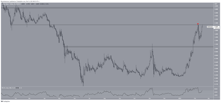 Render (RNDR) fiyatı, 2,17 dolar direnç bölgesini geçmeyi deneme yapıyor. Eğer başarılı olursa, bir sonraki direnç 3,70 dolarda yer alıyor. Bu da yılın en yüksek seviyesi olacaktır.