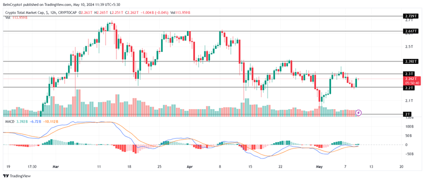 Tüm kripto para birimlerinin toplam değeri, 2,2 trilyon dolarlık desteğin altına düşmeye karşı savunmasızdı. Bununla birlikte, piyasadaki değişen rüzgarlar, TOPLAM %2,85’lik bir toparlanma ile sonuçlandı ve bir günde 114 milyar dolardan fazla ekledi.