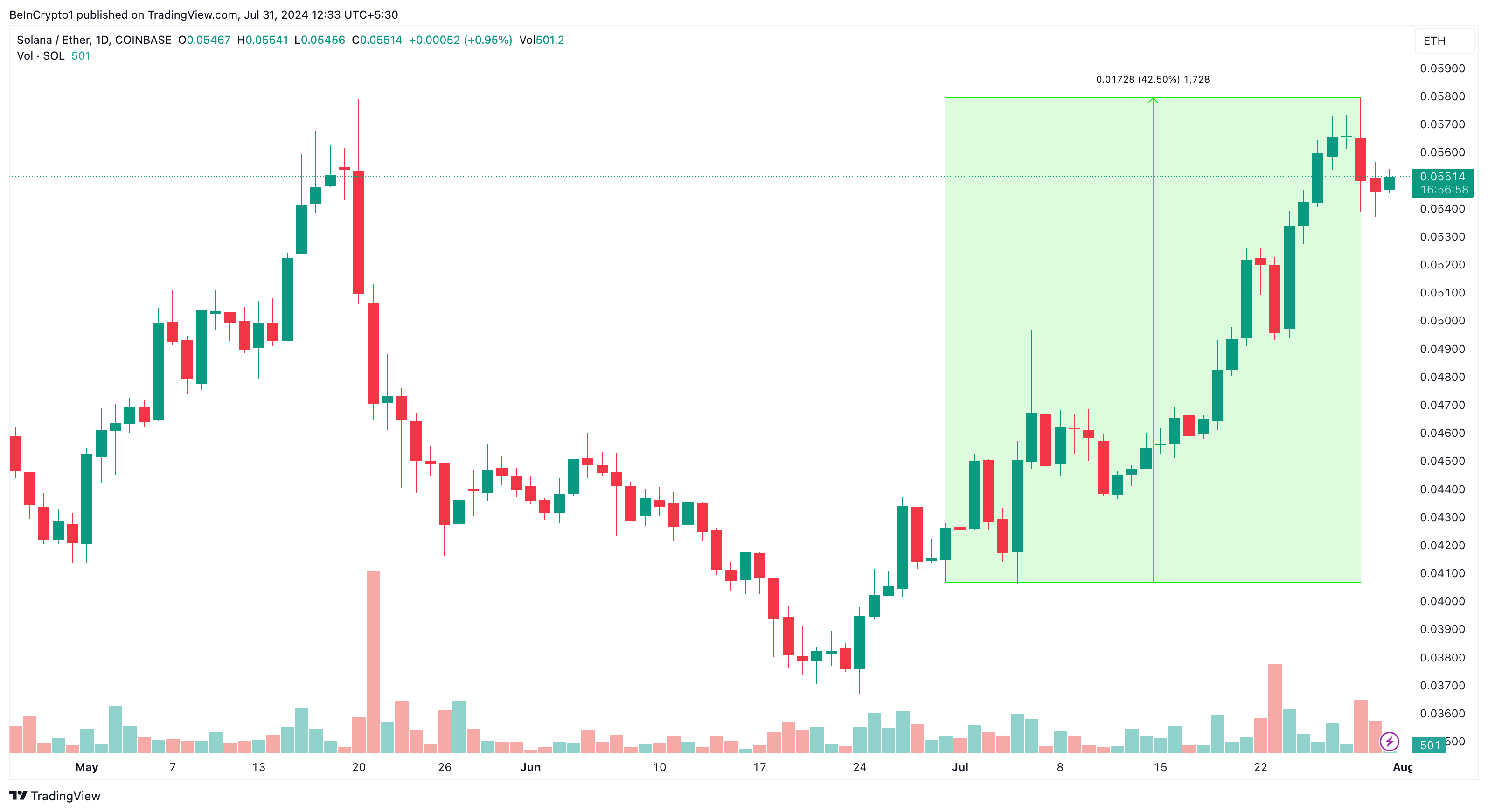 Örneğin, ay başladığında 1 SOL, 0,040 ETH’ye eşitti. Ancak haber yayına hazırlanırken bu rakam 0,050 ETH. Bu hakimiyet devam ederse ve SOL 200 doların üzerine çıkarsa, 260 doları aşmasına yardımcı olan ve sonunda onu tüm zamanların en yüksek seviyelerine götüren katalizör olabilir.