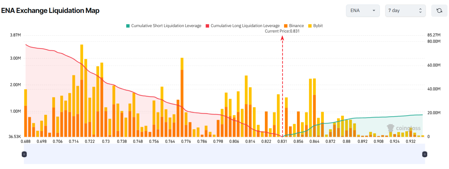 ENA için yükseliş yönlü yatırımcı hissiyatı arttı ve fiyatını Ağustos ayında 0,50 Dolar’dan 0,80 Dolar’ın üzerine çıkardı. BeInCrypto’nun son raporu, balinaların hala ENA biriktirdiğini ve likidasyon haritasının trader’ların kısa vadeli kazanç beklentilerini yansıttığını gösterdi.