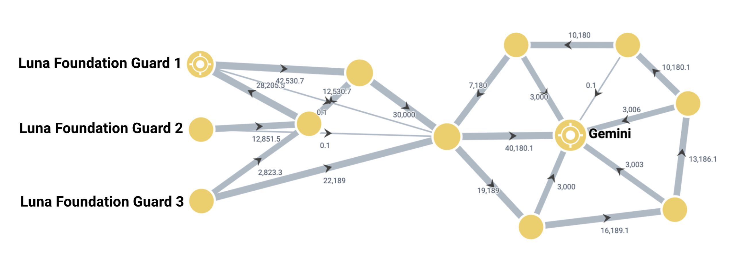 Şimdiye kadar bu konuya yönelik resmi bir açıklama gelmezken Blok zincir analitik şirketi Elliptic, Luna Vakfı’nın cüzdanlarını incelediği bir rapor yayımladı. Tom Robinson tarafından yayımlanan raporda, vakfın 3 farklı cüzdanında olayların başlangıcında toplam 80,394 adet Bitcoin olduğuna dikkat çekildi.