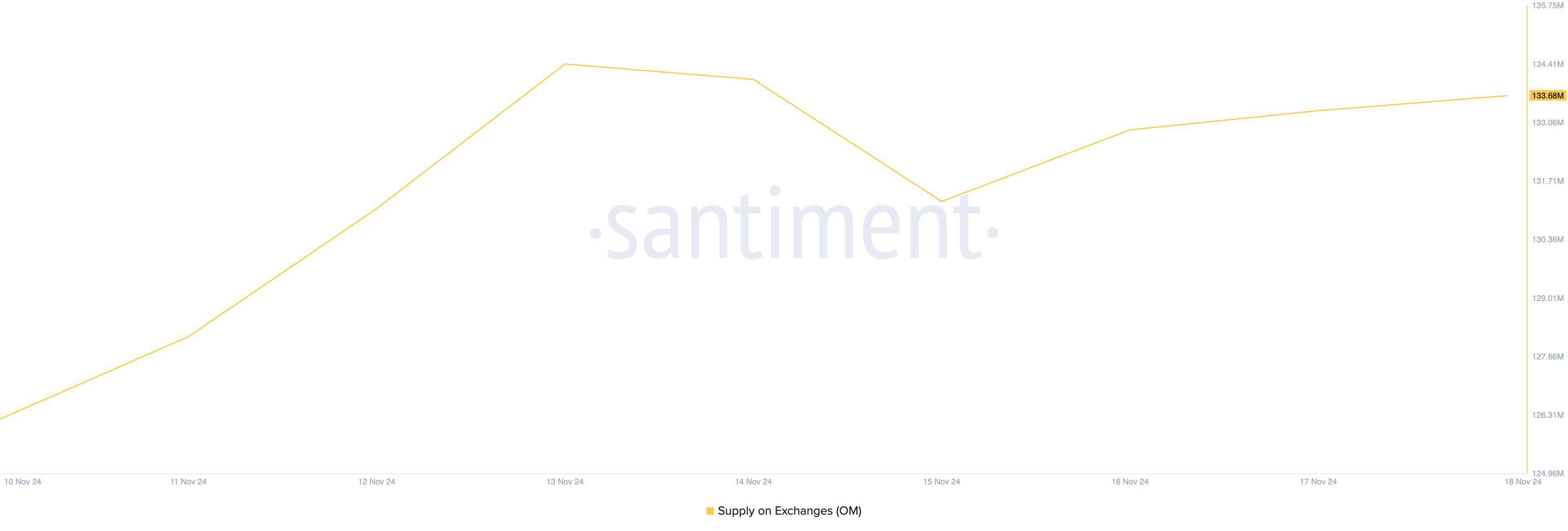 Bu düşüş, borsalardaki arzda bir artışla birlikte geldi ve satışları doğruladı. Santiment verilerine göre, OM’un kripto para borsalarındaki arzı son üç günde %2 arttı. Yazı yazılırken, borsa cüzdanlarında 553 milyon dolar değerinde 134 milyon OM token bulunuyor.