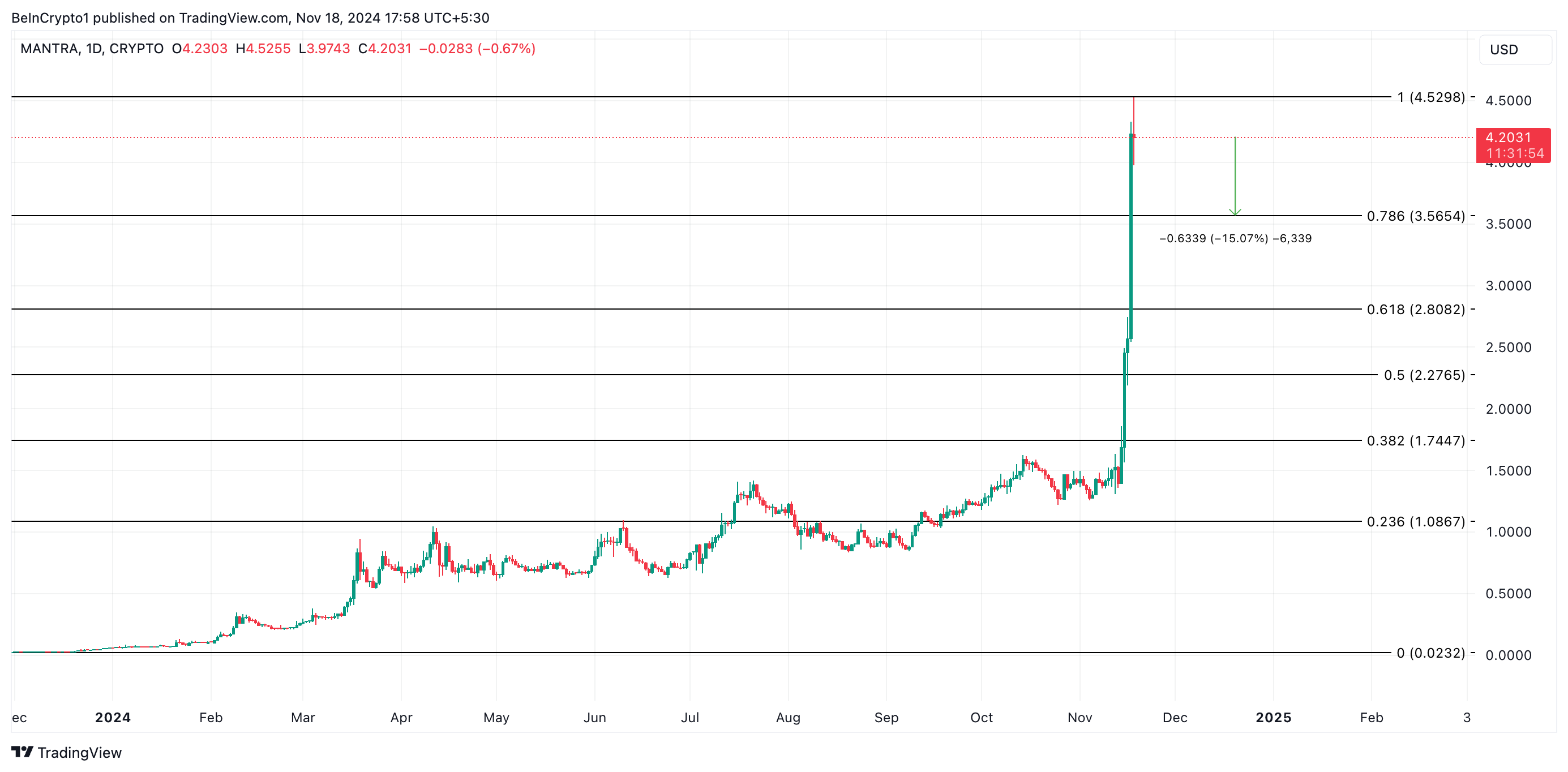 Şu anda, RWA varlığı 4,20 dolardan işlem görüyor. Kar realizasyonu devam ederse, Mantra token’i son kazanımlarını kaybedebilir ve potansiyel olarak %15 düşerek 3,56 dolara gerileyebilir. Bu seviyede boğa momentumu daha da zayıflarsa, güçlü bir destek olarak kalmayabilir ve fiyat 2,80 dolara daha derin bir düşüş yaşayabilir.