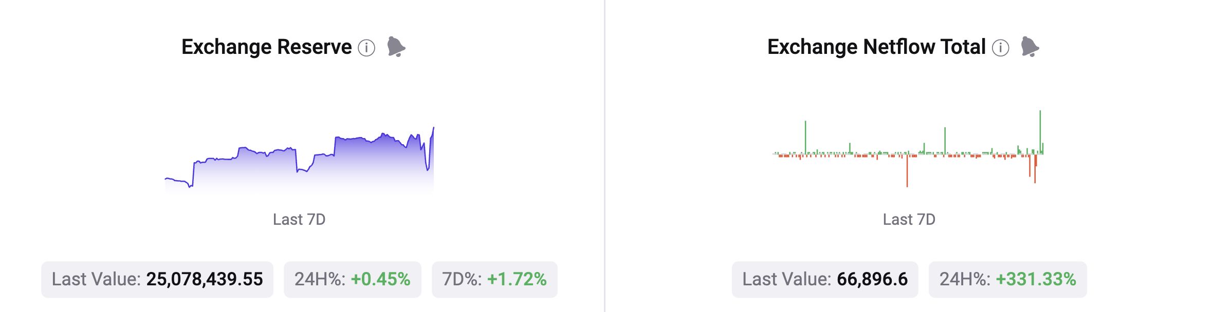 Şimdi MASK Coin fiyatında görülen yükselişin devamlılığı merak ediliyor. En son gelen On-chain veriler olası satış baskısına işaret etti. Borsa rezerv metriği, borsalara aktarılan MASK Coin miktarının son 7 günün zirvesinde olduğuna işaret ediyor. Bu durum altcoin için artan satış baskısını gösterdi.