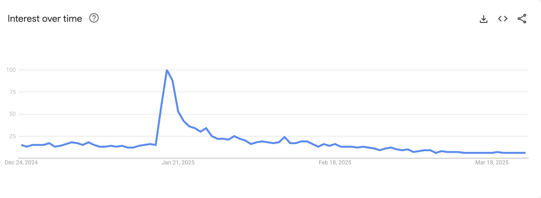 Dogecoin ve Shiba Inu gibi büyük meme coin’ler önemli fiyat düşüşleri yaşadı ve işlem hacimleri son bir ayda %26,2 azaldı. Bu düşüş, Google Trends verilerinden ve yeni meme coin projelerinin azalmasından da görülebilen azalan kamu ilgisini yansıtıyor.