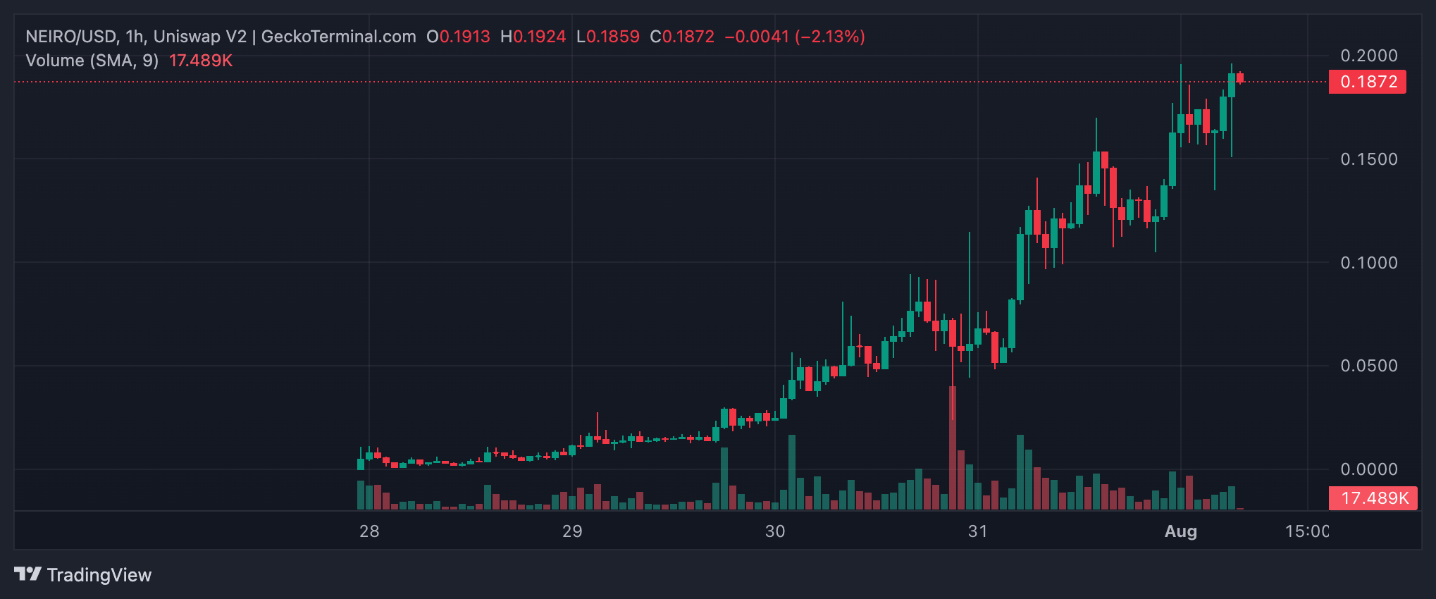 NEIRO memecoin fiyatı, Birkaç gün önce piyasaya sürülen NEIRO, özellikle Ethereum’daki NEIRO, bugün 0,19 dolarlık yeni bir Tüm Zamanların En Yüksek Seviyesine (ATH) ulaştı. İşte bunun nasıl olduğuna ve bundan sonra ne olabileceğine dair ayrıntılı bir döküm.