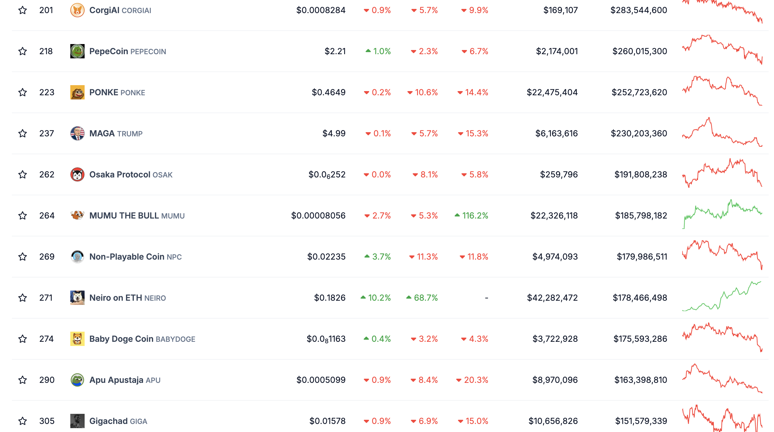 CoinGecko’dan alınan veriler, NEIRO tokeninin en değerli 290. kripto para birimi olduğunu gösteriyor. NEIRO token, diğer kriptoların kırmızı gördüğü bir zamanda pozitif getirisi olan tek meme coin’dir.