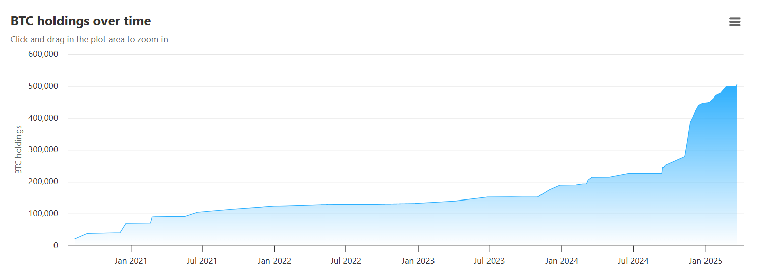 Bu alımdan sonra, MicroStrategy 500.000’den fazla Bitcoin’e sahip. Aşağıdaki grafik, şirketin BTC satın alma faaliyetinin 2024’ün sonlarından itibaren önemli ölçüde yoğunlaştığını gösteriyor, bu dönemde varlığın fiyatı tüm zamanların en yüksek seviyesine ulaşmış olsa da.