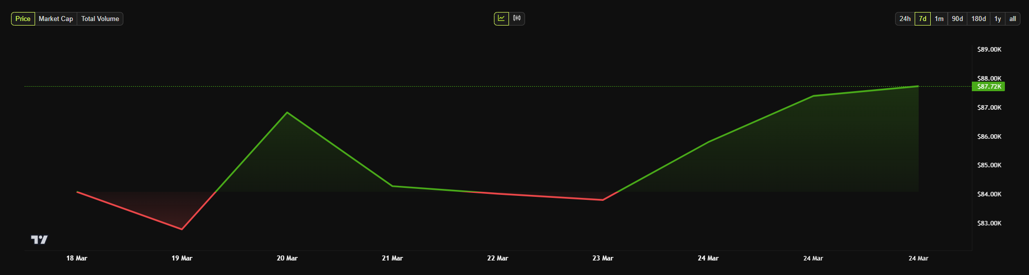 “Strategy, 6.911 BTC’yi ~584,1 milyon Dolar karşılığında, Bitcoin başına ~84.529 Dolar’dan satın aldı ve 2025 yılı itibarıyla %7,7 BTC getirisi elde etti. 23 Mart 2025 itibarıyla, Strategy 506.137 BTC’yi ~33,7 milyar Dolar karşılığında, Bitcoin başına ~66.608 Dolar’dan satın aldı,” Saylor sosyal medya üzerinden belirtti.
