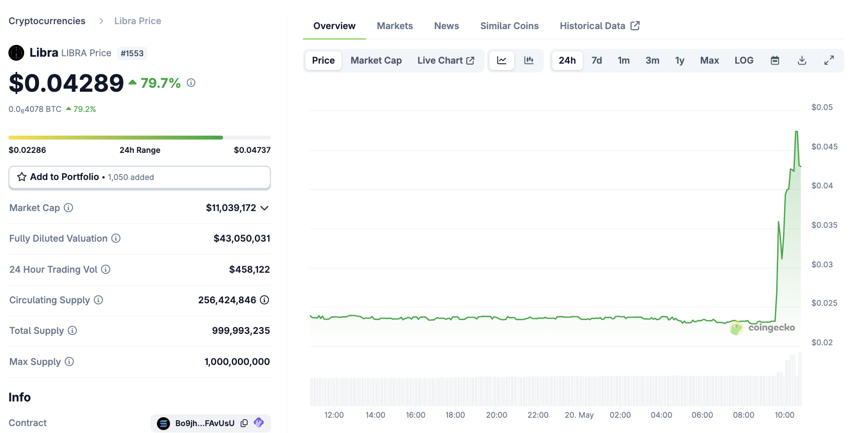 Şubat ayında piyasaya sürülüp çökmesinden bu yana, LIBRA eski başarısını asla geri kazanamadı, ancak bugün yükseliyor. Varlık %80’in üzerinde bir artış gösterdi, ardından hafifçe düştü.