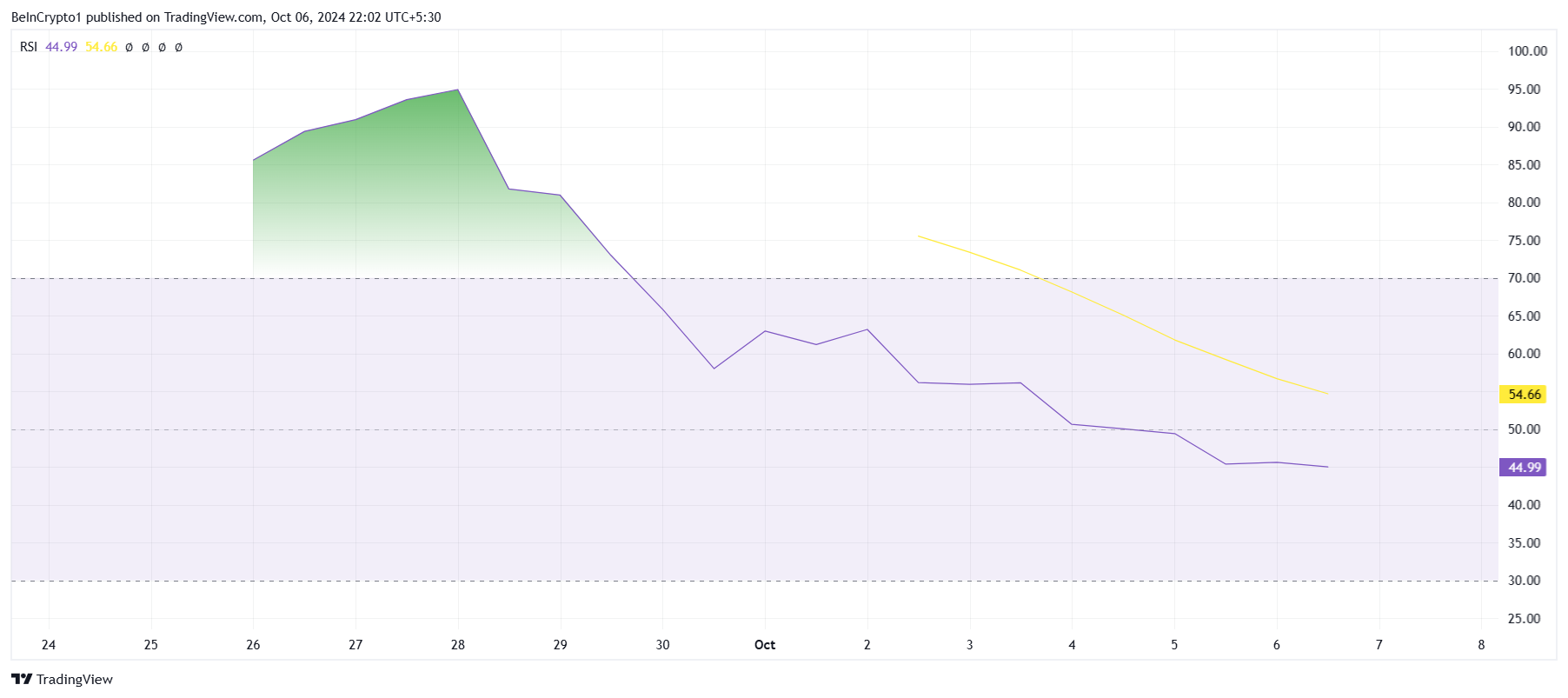Teknik açıdan, Moo Deng’in momentumu da kesinlikle ayı piyasasına döndü. Göreceli Güç Endeksi (RSI) kritik nötr çizgi olan 50,0’ın altına düştü. Bu da alım baskısının zayıf olduğunu ve ayı piyasası momentumunun üstün geldiğini gösteriyor.
