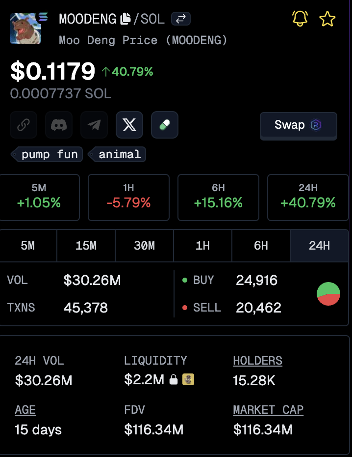 Son 24 saatte 30 milyon dolar üzerinde işlem hacmiyle MOODENG’in piyasa değeri 100 milyon doları aştı. Ancak söz konusu değer, açık riskler olmadan elde edildi.