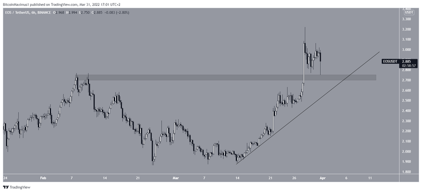 Sponsored SponsoredFiyat grafiğine bakıldığında ise EOS’un 14 Mart’ta yükselen bir destek çizgisini takip ederek artış sergilemeye başladığı görülüyor. Yükselen destek çizgisi ise 2,72 dolardaki yatay destek bölgesiyle kesişiyor. Dolayısıyla bu kesişim, altcoin fiyatının düşüşe geçmesi halinde dahi düşüş hareketinin sona erebileceği anlamına geliyor.