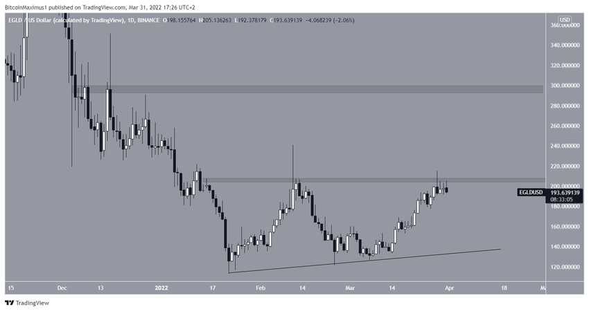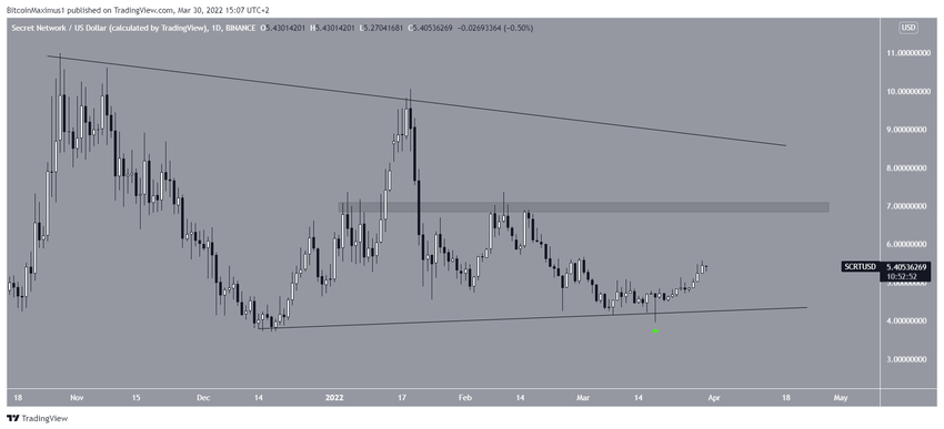 Fiyat grafiğine bakıldığında ise 2021 yılı Kasım ayından bu yana simetrik bir üçgen formasyonu içinde hareket edildiği görülüyor. Buna ek olarak altcoin, 18 Mart’ta formasyonun destek çizgisinden sıçrama gerçekleştirdi ve şu anda yükselişe devam ediyor.