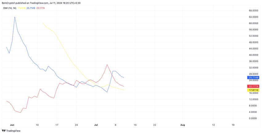 Notcoin’in (NOT) Yönlü Hareket Endeksi (DMI) göstergesinden elde edilen okumalar, altcoin’e yönelik yükseliş eğiliminin yeniden canlandığını doğruluyor.