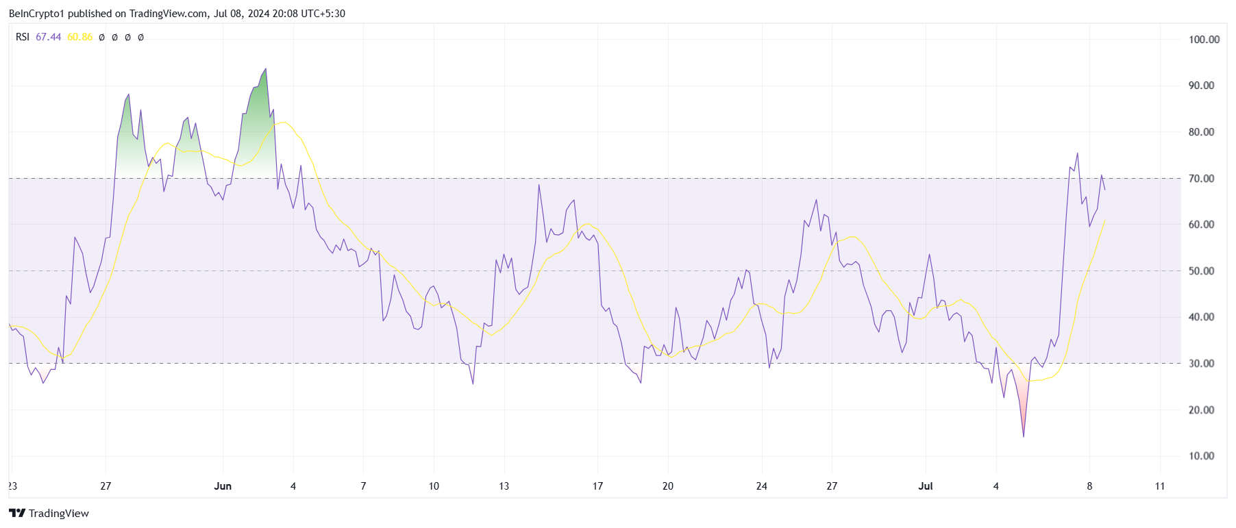 Notcoin fiyatı, son birkaç günde keskin bir şekilde yükselerek altcoini 0,0171 dolar seviyesine taşıdı. Bu yükseliş, alım baskısında güçlü bir artışa yol açtı. Notcoin’in Göreceli Güç Endeksi (RSI) şu anda nötr çizginin üzerinde bulunuyor.