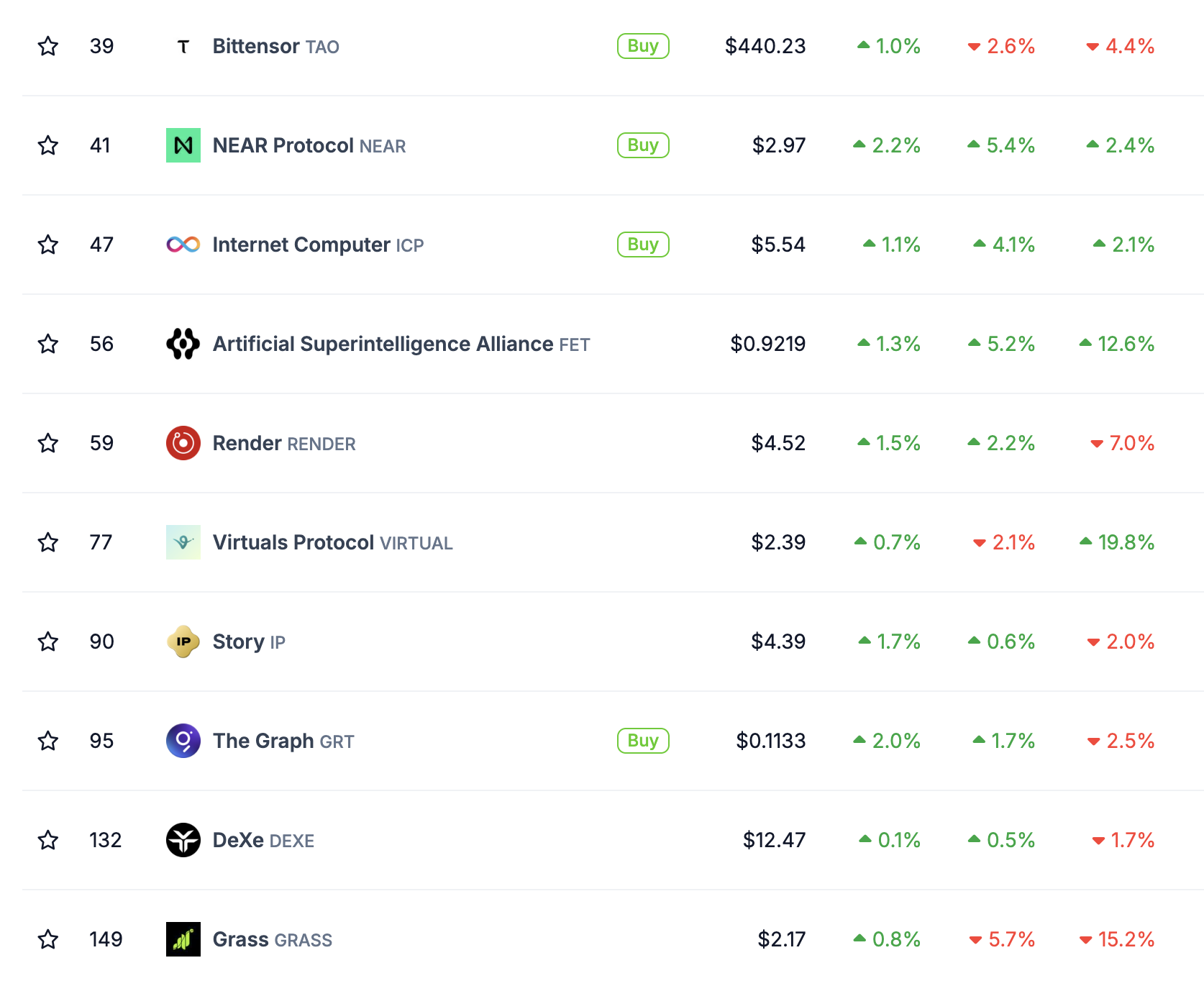 Ancak, CoinGecko’ya göre, AI token sektörü son 24 saatte piyasa kapitalizasyonunda sadece %0,6’lık mütevazı bir artış gördü. İlk on AI token’ından yedisi küçük kazançlar kaydetti.