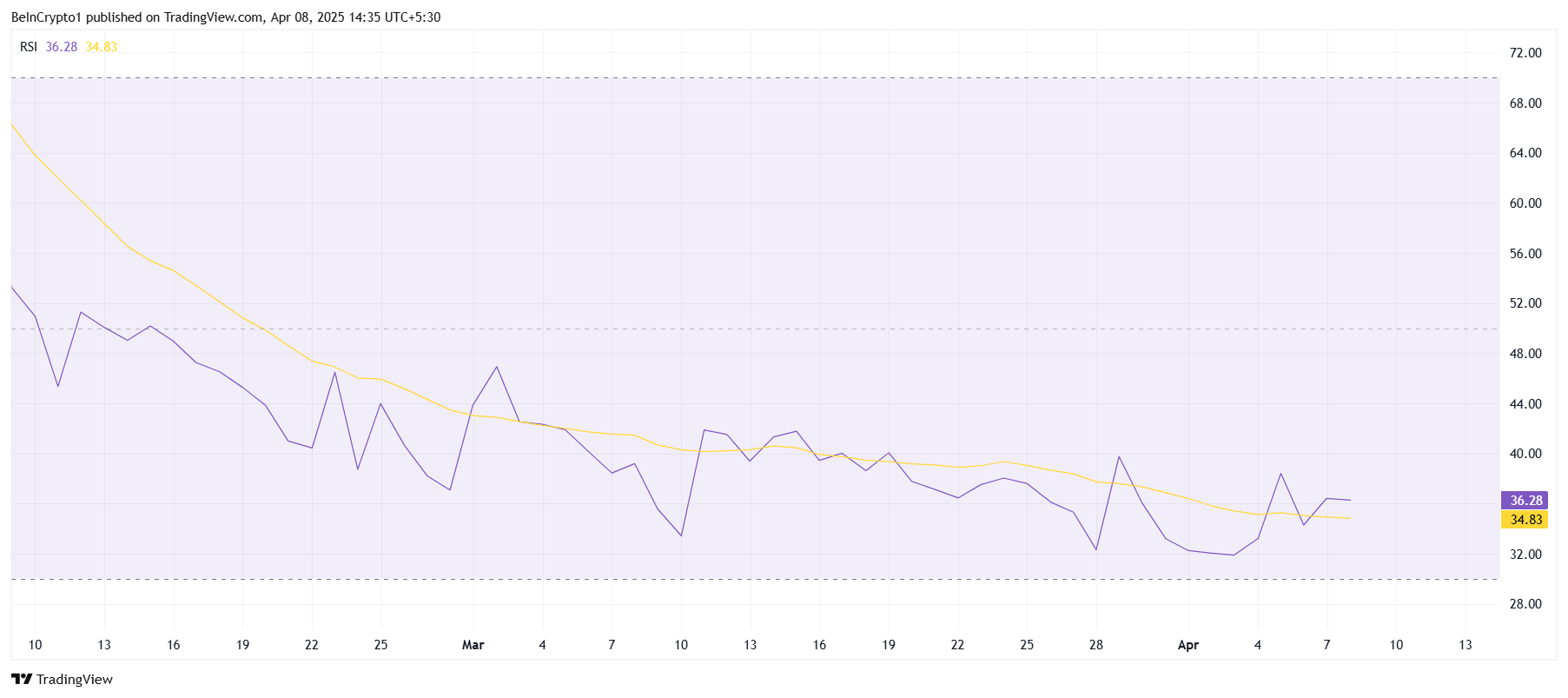 Daha geniş ölçekte, RSI gibi teknik göstergeler bir aydan uzun süredir düşüş trendi gösteriyor ve nötr çizginin altında sıkışmış durumda. RSI’nin 50,0’ın altında konumlanması, satış baskısının alım momentumunu hala aştığını ve fiyatı baskıladığını gösteriyor. Göstergenin uzun süreli düşüşü, sürdürülebilir bir düşüş piyasası ortamına işaret ediyor.