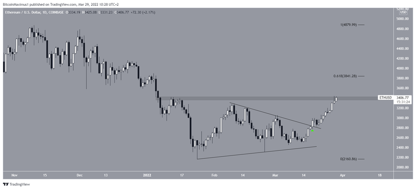 Diğer yandan 18 Mart’ta formasyondan çıkış gerçekleşti. Ayrıca yükseliş hareketi hız kazandı. Mevcut fiyat hareketine bakıldığında ise ETH fiyatının 3.400 dolardaki direnç bölgesini aşmayı denediği görülüyor.