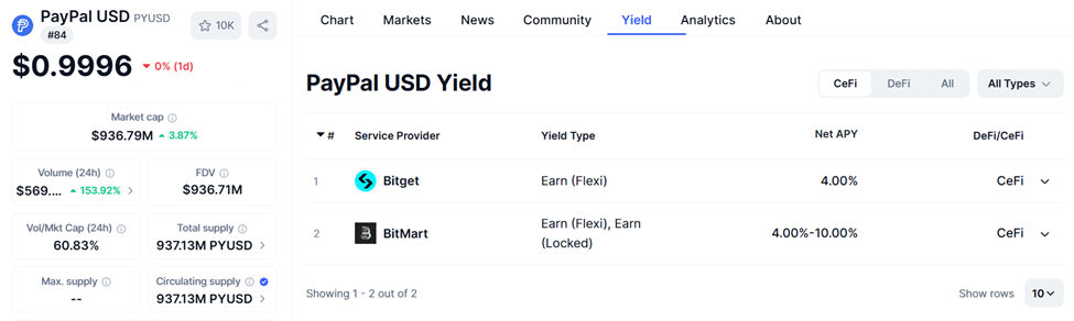 SponsoredPYUSD Hızla Yükseliyor, Varlıklarda %4 Getiri Sağlıyor
