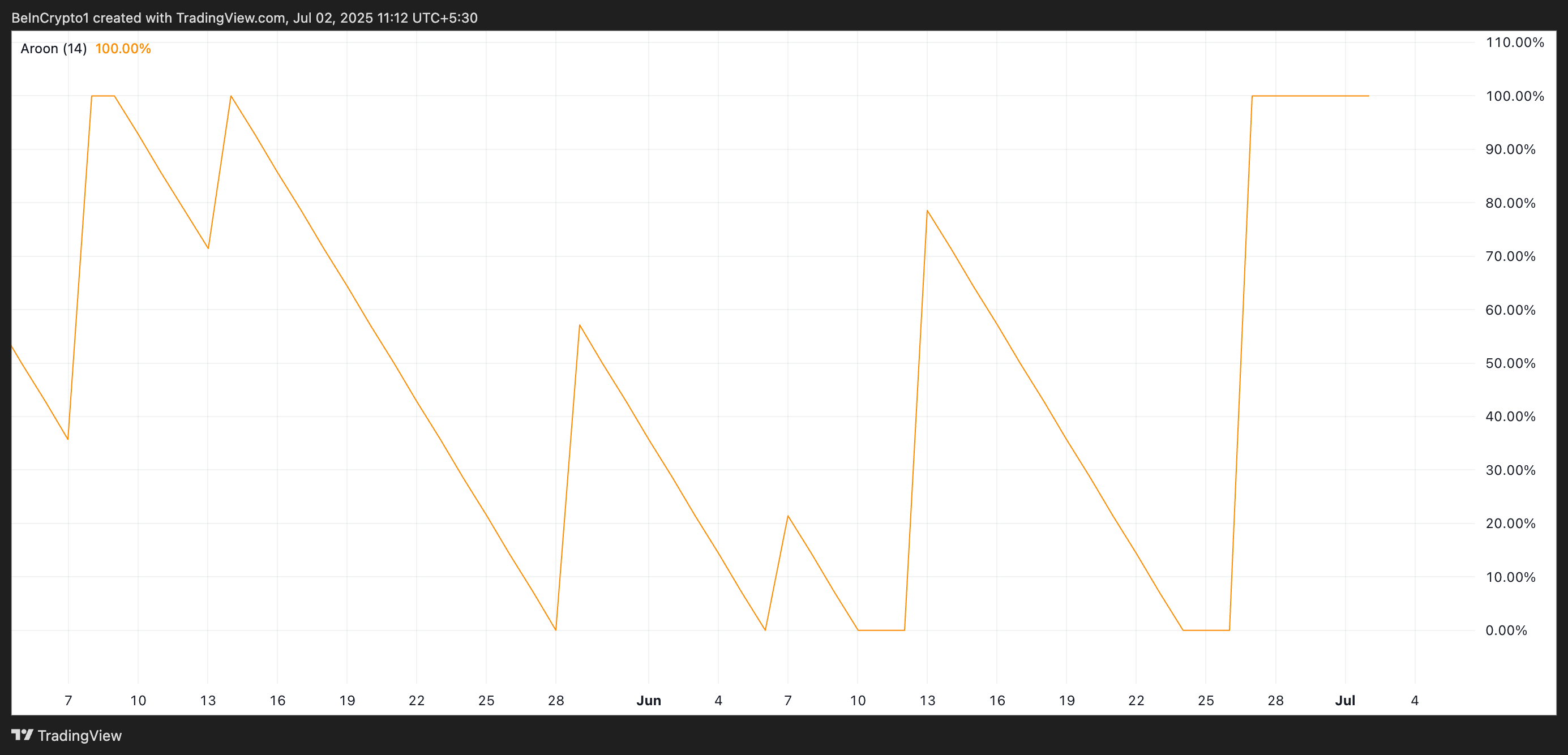 Teknik göstergeler, PENGU’nun kısa vadede bu kazançları genişletmeye hazır olduğunu gösteriyor. Örneğin, token’ın Aroon Up Hattı şu anda %100 seviyesinde. Bu, PENGU’nun mevcut yükseliş trendinin güçlü olduğunu, önemli bir talep tarafından desteklendiğini ve spekülatif işlemlerle yönlendirilmediğini gösteriyor.