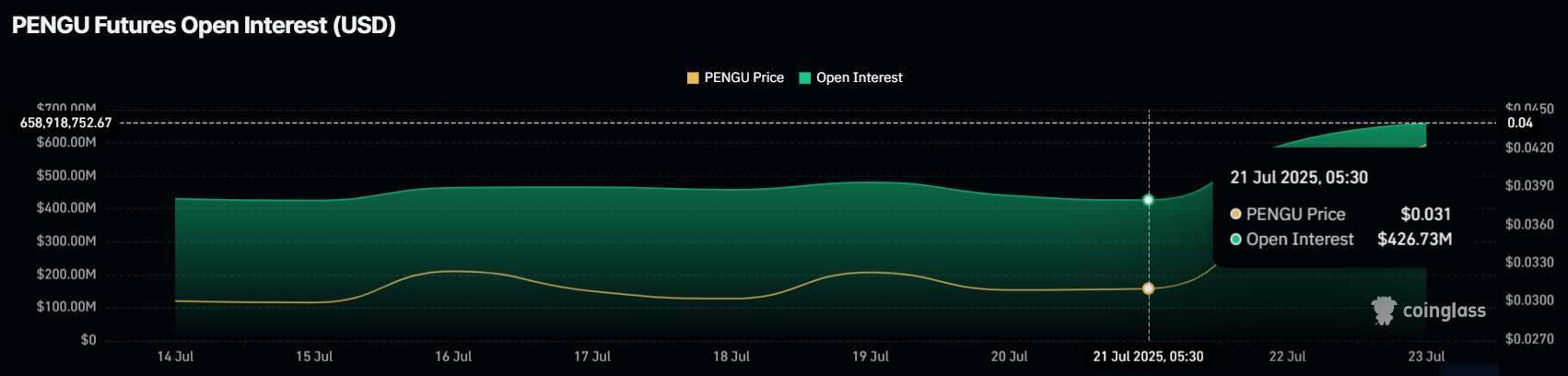 SponsoredBu Açık Pozisyon artışı, daha geniş piyasa dalgalanmalarına rağmen yatırımcı iyimserliğini gösteriyor. Sözleşme hacimlerindeki artış, PENGU’nun fiyat yükselişinin spot piyasa işlemlerine ve aynı zamanda önemli bir kaldıraç kullanımına dayandığını yansıtıyor.