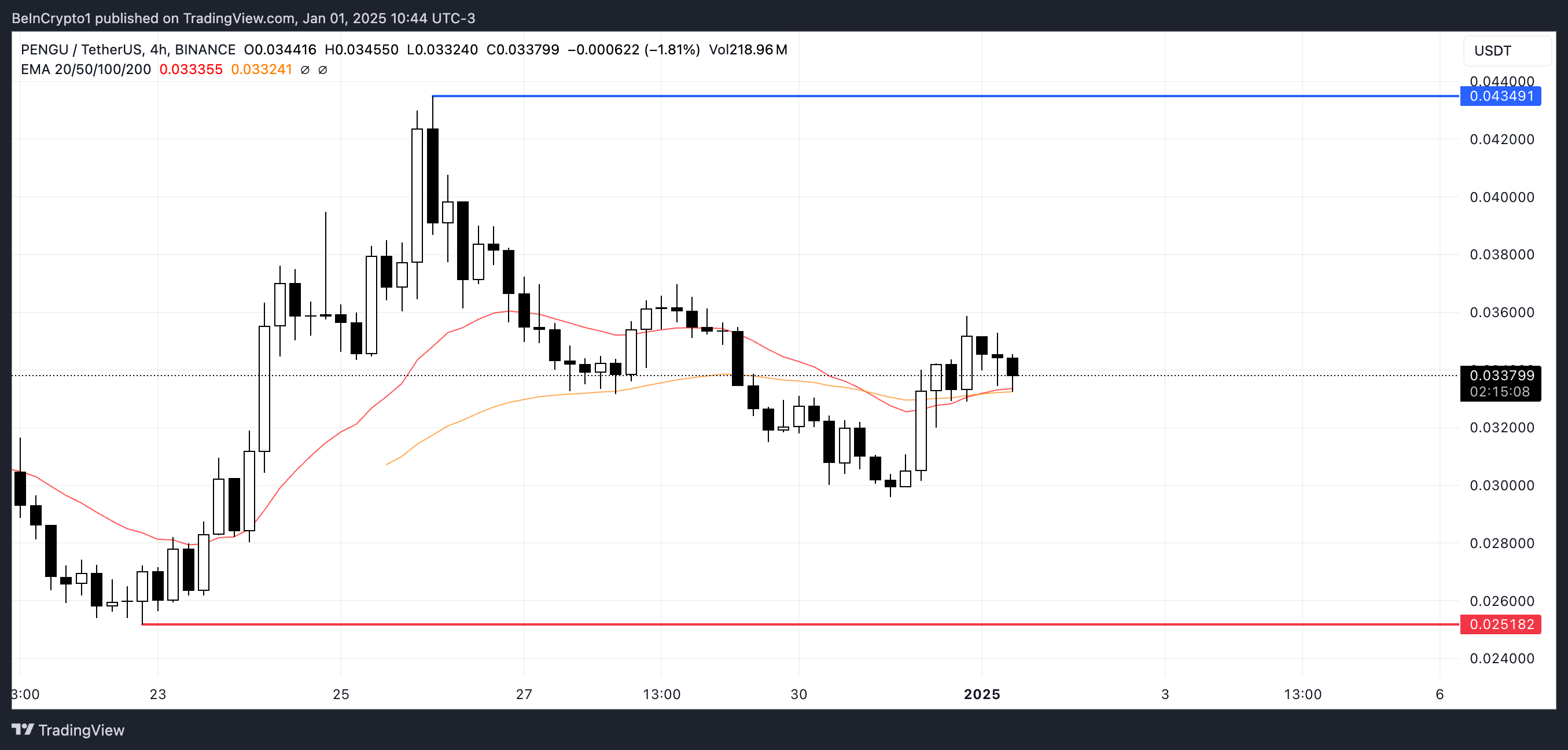 Bu seviyenin aşılması, daha fazla kazanç için kapıyı açabilir. 0,045 dolar ve 0,05 dolar hedefleriyle, PENGU önceki tüm zamanların en yüksek seviyelerine yaklaşabilir veya hatta BONK’un piyasa değerini tekrar aşabilir.