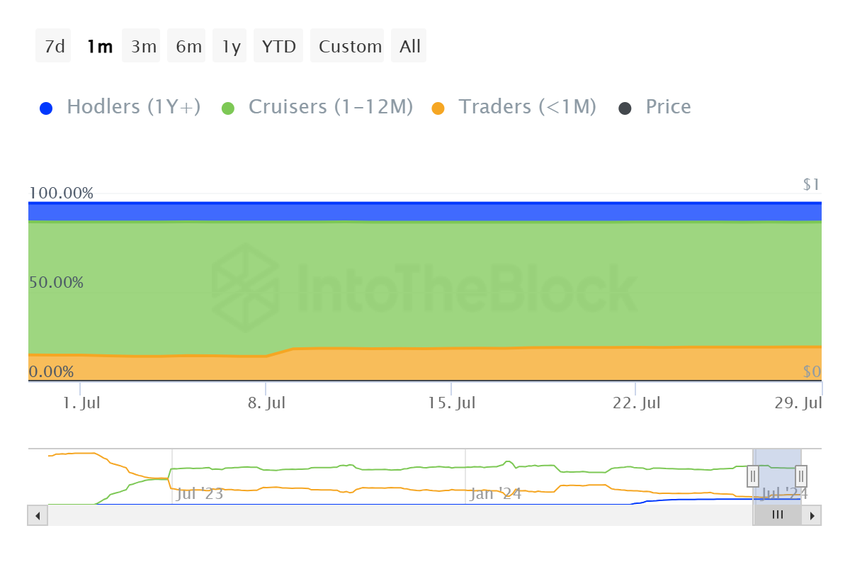 PEPE fiyatı, bir grup yatırımcının , yani kısa vadeli sahiplerin elindeki potansiyel satışların etkisini taşıyabilir. Bu yatırımcıların varlıklarını genellikle bir aydan daha kısa bir süre elinde tuttukları bilinmektedir.