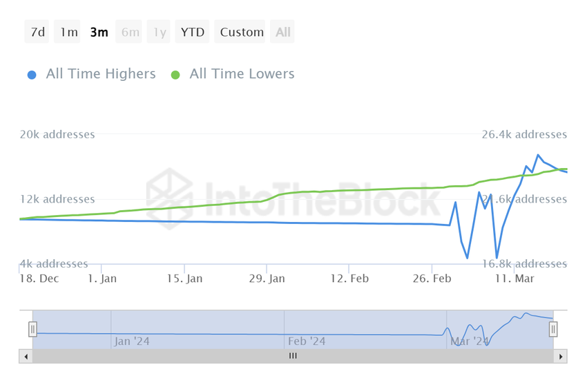 Arzlarını bu aralıkta satın alan yatırımcılar “tüm zamanların en yükseği” olarak adlandırılır. Şu anda, yaklaşık 15.300 adres bu tüm zamanların en yüksek adreslerini oluşturmaktadır. Bu adresler, mevcut tüm PEPE holding adreslerinin %8,3’ünü temsil etmektedir ve bu da etkilerini önemli kılmaktadır.