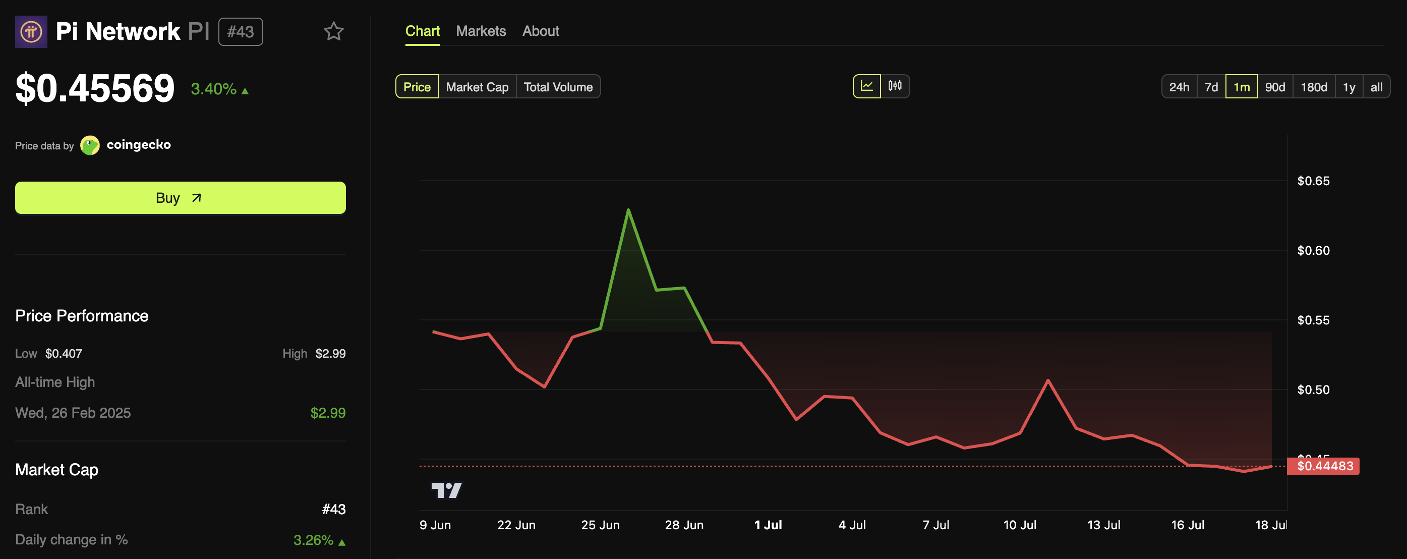 Pi Coin’un fiyatı son 24 saatte %3,4 arttı. Bu artış, Pi Core Team (PCT)’in Pi2Day 2025 Ekosistem Yarışması’ndan önemli kilometre taşlarını açıklamasıyla ve güçlü topluluk katılımını vurgulamasıyla aynı zamana denk geliyor.
