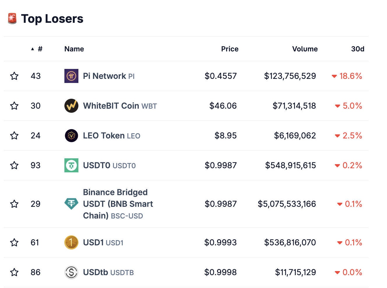 Pi Coin, En Çok Kaybedenler Arasında Lider
