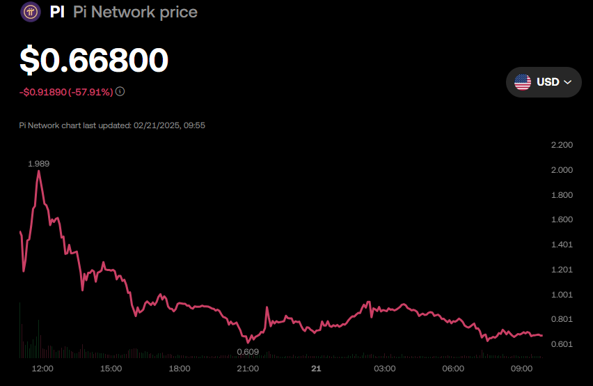 Dahası, analist Pi Network’ün PI coin’inin kısa bir süreliğine 1 Dolar’dan işlem göreceğini, ardından düşeceğini belirtti. Bu yazının yazıldığı sırada, PI OKX kripto para borsası’nda 0,668 Dolar’dan satılıyordu ve bu, Cuma günkü seansın açılışından bu yana neredeyse %60’lık bir düşüşü temsil ediyor.