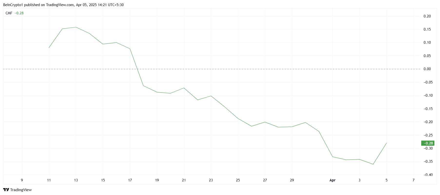 Chaikin Money Flow (CMF) göstergesi, yazı yazıldığı sırada Pi Network’e olumlu girişler olduğunu gösteriyor. Bu değişim, altcoin’in piyasa tabanına ulaştığına dair işaretler nedeniyle yatırımcı güveninin geri döndüğünü gösteriyor. Piyasa koşullarının iyileşmesi beklenirken, Pi Network potansiyel bir yükseliş için konumlanmış görünüyor ve yatırımcılar mevcut fiyatından yararlanmayı düşünüyor.