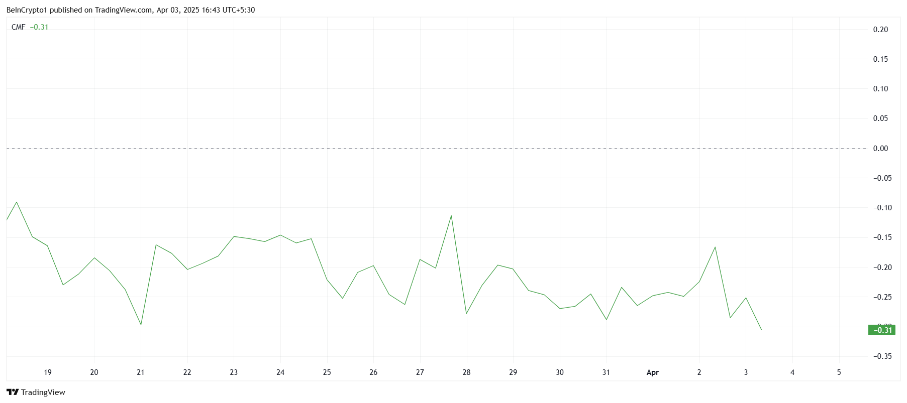 SponsoredÇıkış trendi yatırımcılar için endişe verici çünkü olumlu bir ivmenin olmaması uzun süreli bir düşüş trendini işaret ediyor. Piyasa hissiyatı düşüş yönünde kalıyor ve satıcılar alıcıları aşıyor. CMF negatif bölgede kaldıkça, Pi Network’ün fiyatının kısa vadede istikrar bulmakta zorlanabileceğini gösteriyor.