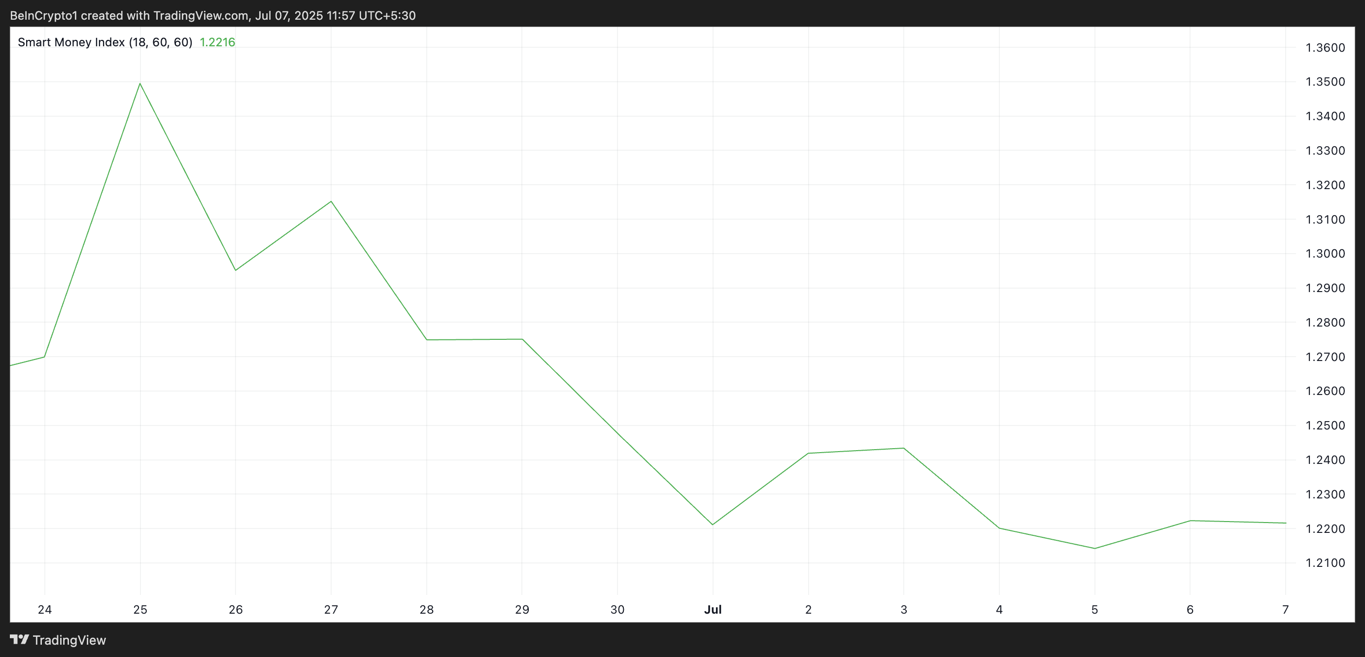 Ayrıca, PI’nin Smart Money Index (SMI) 25 Haziran’dan bu yana sürekli olarak düşüyor. Bu yazı itibarıyla, gösterge 1,22 seviyesinde ve o zamandan bu yana %9 düştü.