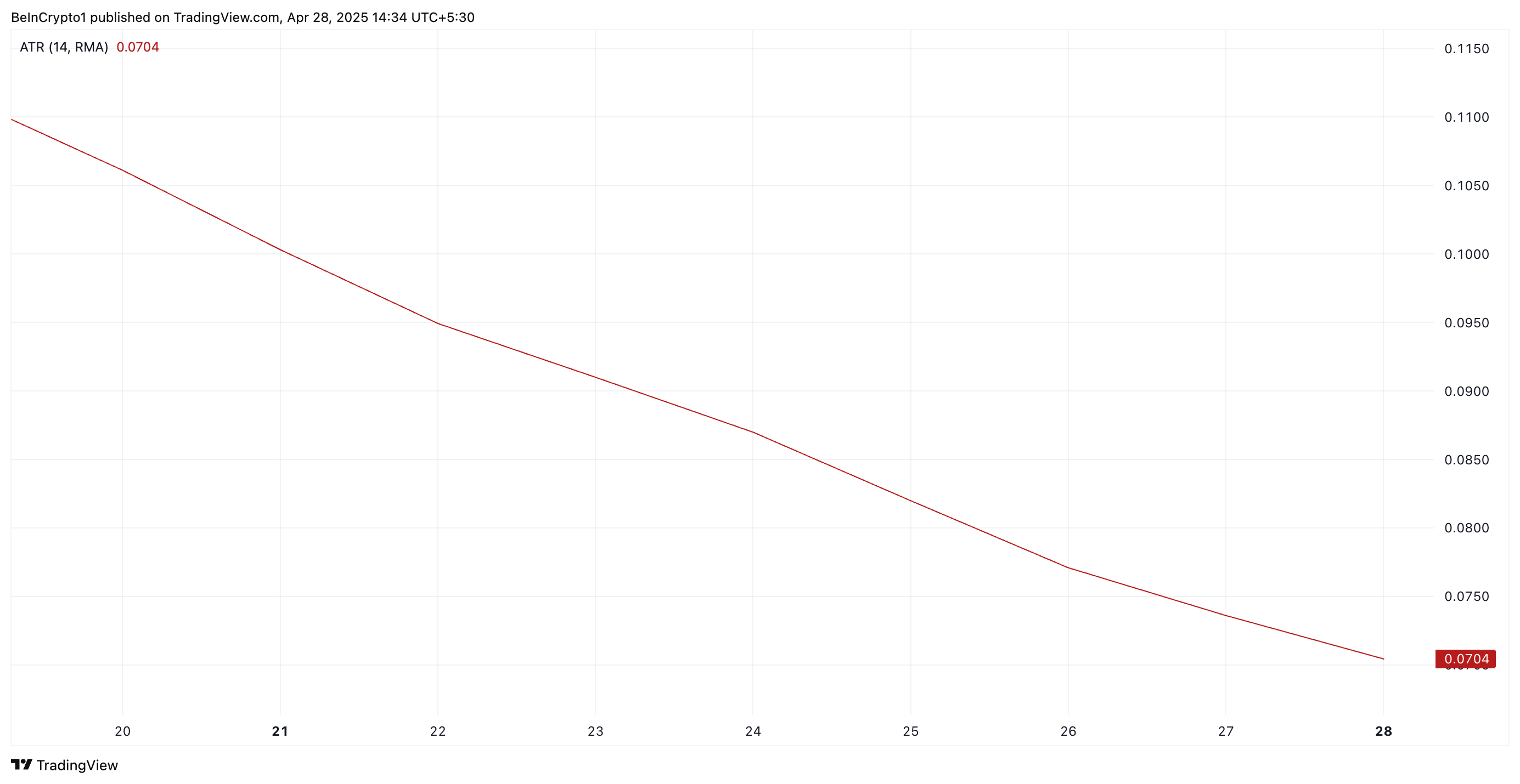 Ayrıca, Mart ayının başından bu yana PI’nin Ortalama Gerçek Aralık (ATR) göstergesindeki istikrarlı düşüş, piyasa oynaklığındaki azalmayı ve fiyat durgunluğuna geçişi doğruluyor. Bu yazı itibarıyla, bu gösterge 0,07 seviyesinde.