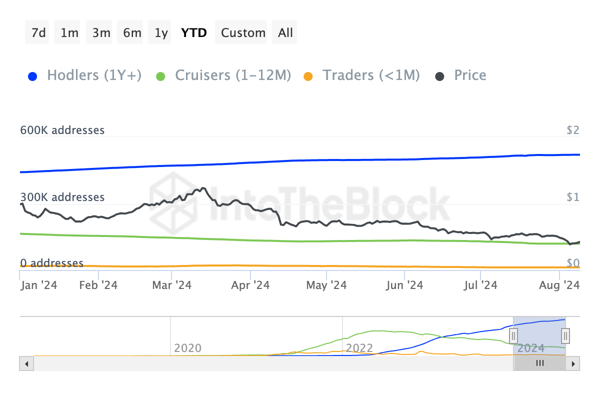 Ancak, IntoTheBlock’tan alınan verilere göre, daha geniş pazar bunu bu şekilde görmüyor gibi görünüyor. Bu yazı itibariyle, blok zinciri analitik platformu, Kruvazör ve Tüccar sayısının azaldığını gösteriyor.