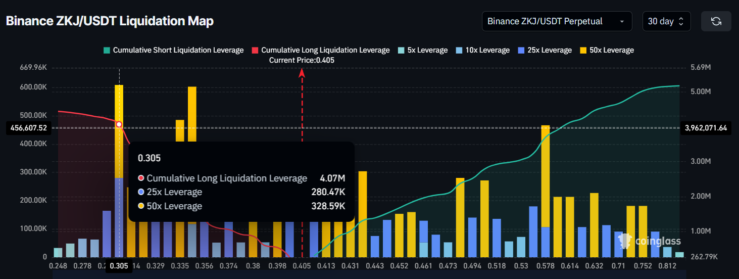 Ancak, önümüzdeki günlerde trader’ların hissiyatı değişirse, ZKJ’nin fiyatı toparlanmakta zorluk çekebilir. Sürekli bir düşüş eğilimi, altcoin’i 0,31 Dolar’ın altına itebilir ve daha fazla düşüşü gerçek bir olasılık haline getirebilir. Fiyat düşmeye devam ederse, bu durum uzun süreli bir düşüşü işaret eder ve iyimser tezi geçersiz kılar. Bu da ZKJ’yi daha büyük kayıplara karşı savunmasız bırakır.