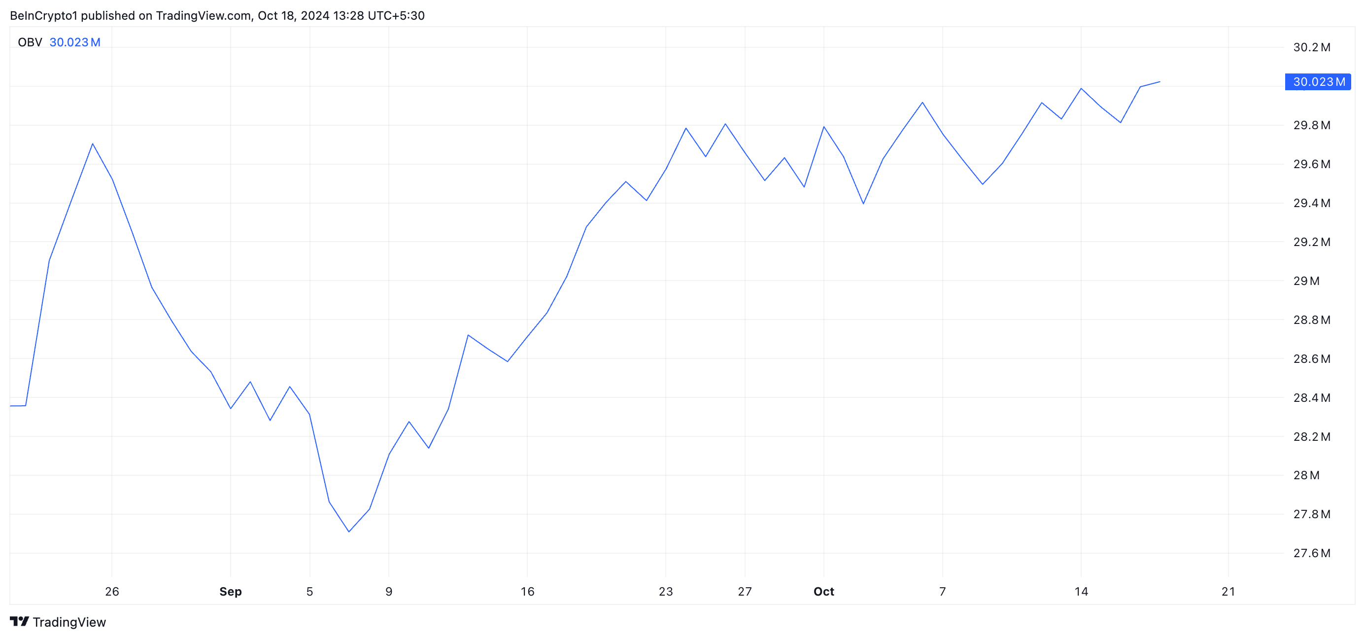 Ayrıca, POPCAT’ın dengeli hacim (OBV) göstergesi basın zamanında yükselişte ve şu anda 30,02 milyon seviyesinde.
