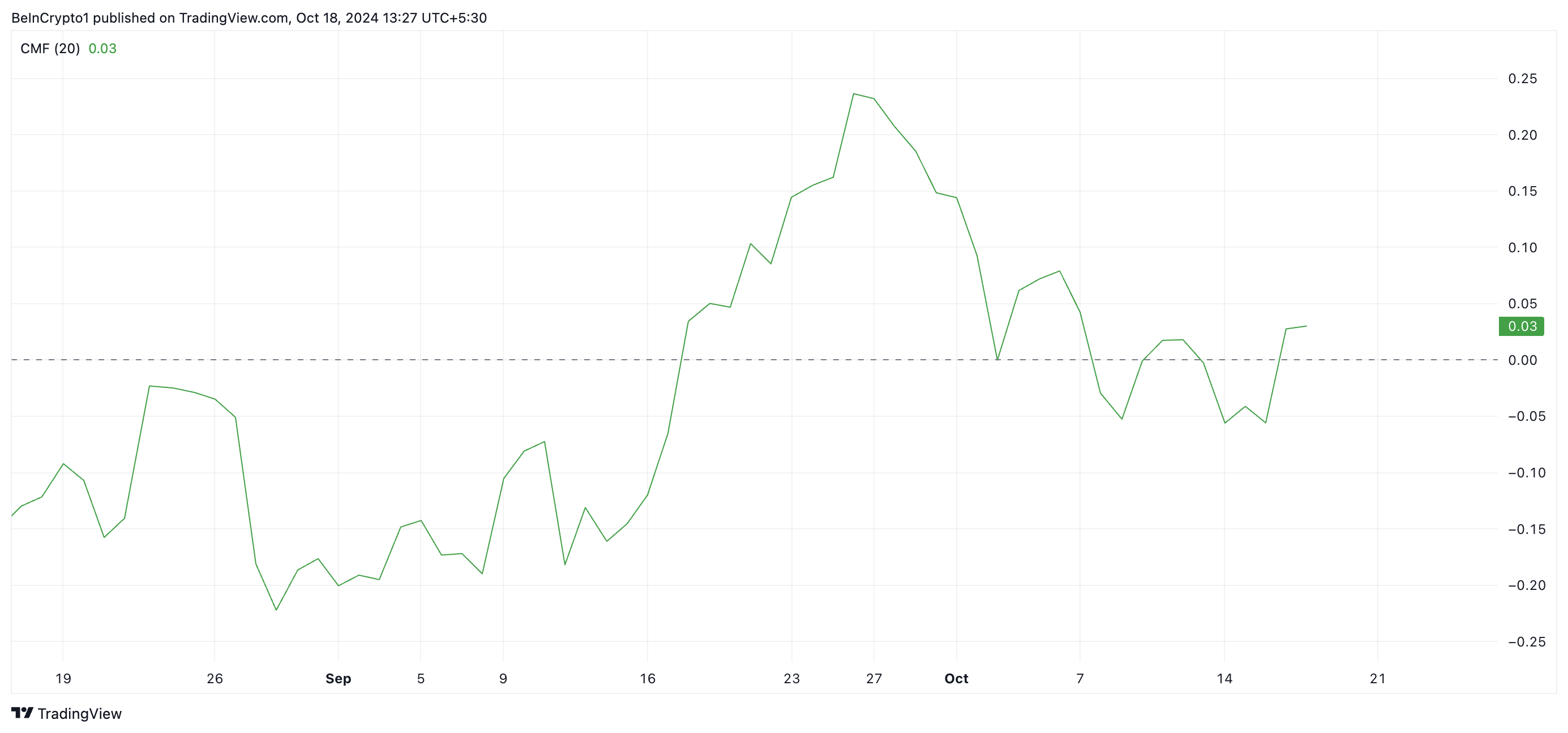 BeinCrypto daha önce belirtti ki, POPCAT’ın fiyatı ile Chaikin Para Akışı (CMF) arasında bir ayı eğilimi var. Bu eğilim, bir varlığın fiyatı artarken CMF’nin düşmesi durumunda ortaya çıkar. Bu da yükseliş trendinin desteklenmediğini öne sürer.