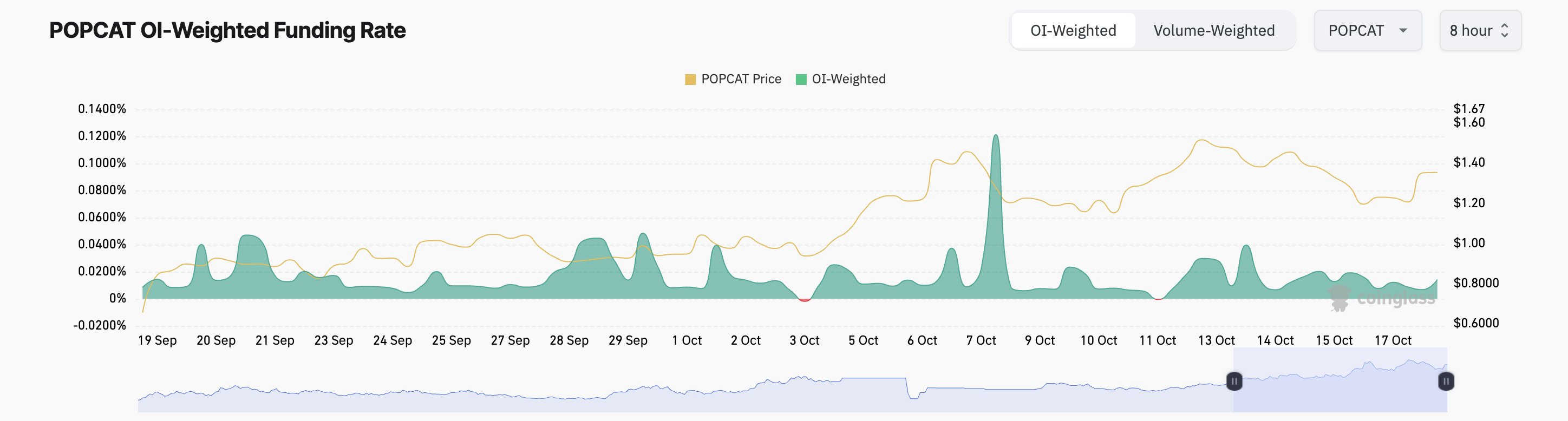 Bu boğa eğilimi POPCAT’ın vadeli işlem piyasasında da mevcut. Şu anda, kripto para borsalarında fonlama oranı %0,014 ile pozitif, bu da türev trader’ların fiyatının artmaya devam edeceğine bahse girdiğini gösteriyor.