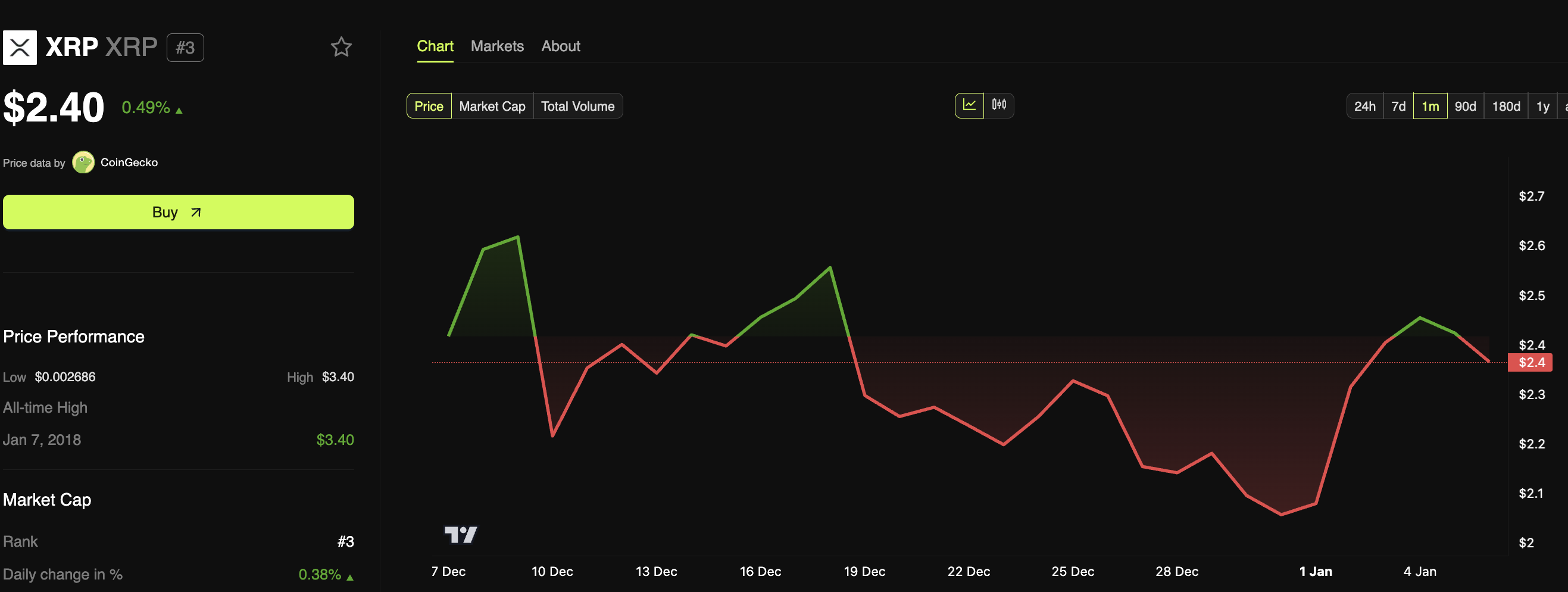 XRP ETF’lerinin bu yıl piyasaya sürülebileceği umudu da var. WisdomTree, Bitwise ve Canary Capital gibi ETF ihraççıları, XRP ETF’leri için SEC’e başvuruda bulundu. Bir onay, XRP’nin 2025’te yeni zirvelere ulaşmasını sağlayabilir. Şu anda, %0,49 artışla 2,40 Dolar’dan işlem görüyor.