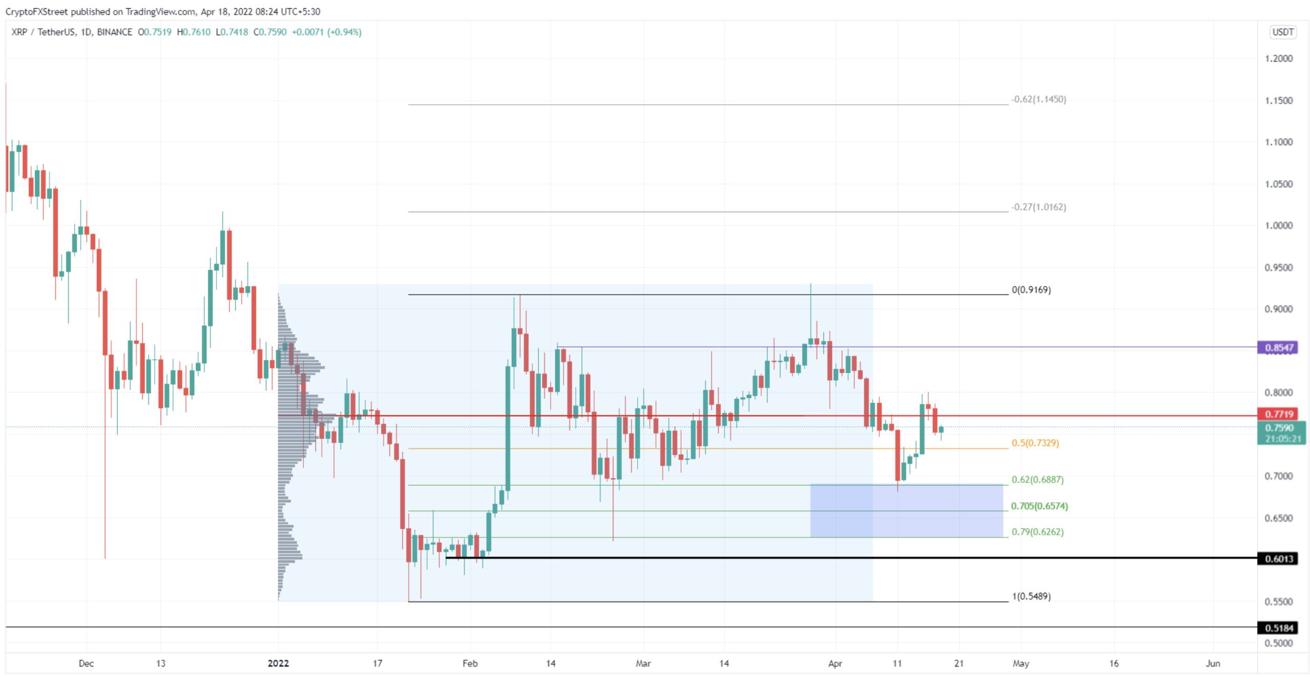 “Yükseliş momentumu, Ripple için ticaret hacminin en yüksek olduğu, 2022 hacim kontrol noktasına denk gelen 0,772 dolardan geçemedi. Sonuç olarak, altcoin 0,733 doları yeniden test etmek için geri döndü.”