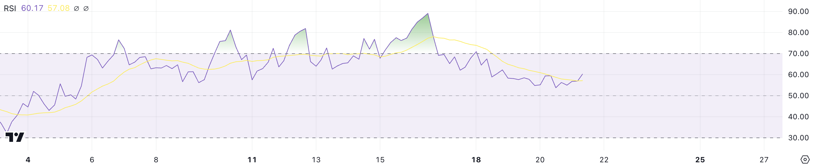 RSI, fiyat değişikliklerinin hızını ve büyüklüğünü ölçer; 70’in üzerindeki değerler aşırı alım koşullarını, 30’un altındaki değerler ise aşırı satım seviyelerini gösterir. 60’ta, XRP’nin RSI değeri hala olumlu bir ivmeyi yansıtırken, önceki yükselişe göre daha dengeli bir duyarlılık gösteriyor.