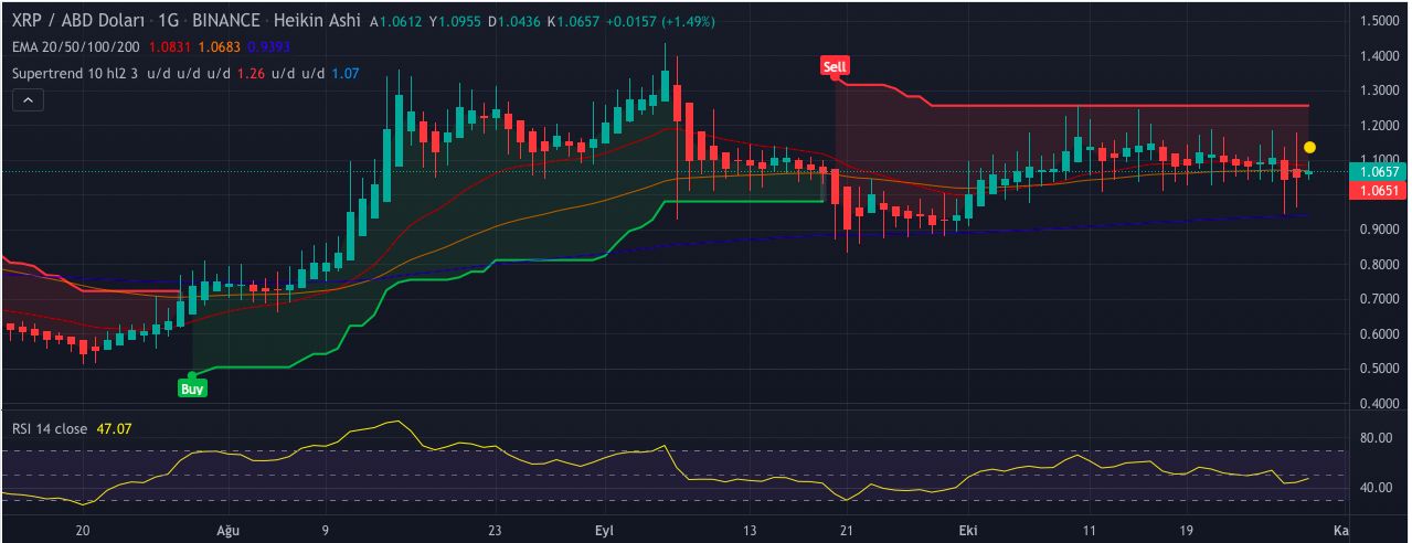 Popüler altcoin Ripple (XRP), 9 Ekim’den bu yana, düşüş trendinden çıkış gerçekleştiremedi. Öte yandan, XRP 27 Ekim’de görülen sert düşüşün ardından yaralarını sarmaya başladı. Oldukça hareketli bir hafta geçiren XRP, 1,16 dolar ile 0,94 dolar seviyelerini test etti. Kripto para analistleri, yatırımcıları belirli fiyat seviyeleri için uyarıyor. Öte yandan analistler Ripple’ın yönü için ortak bir görüşe sahipmiş gibi gözükmüyorlar.