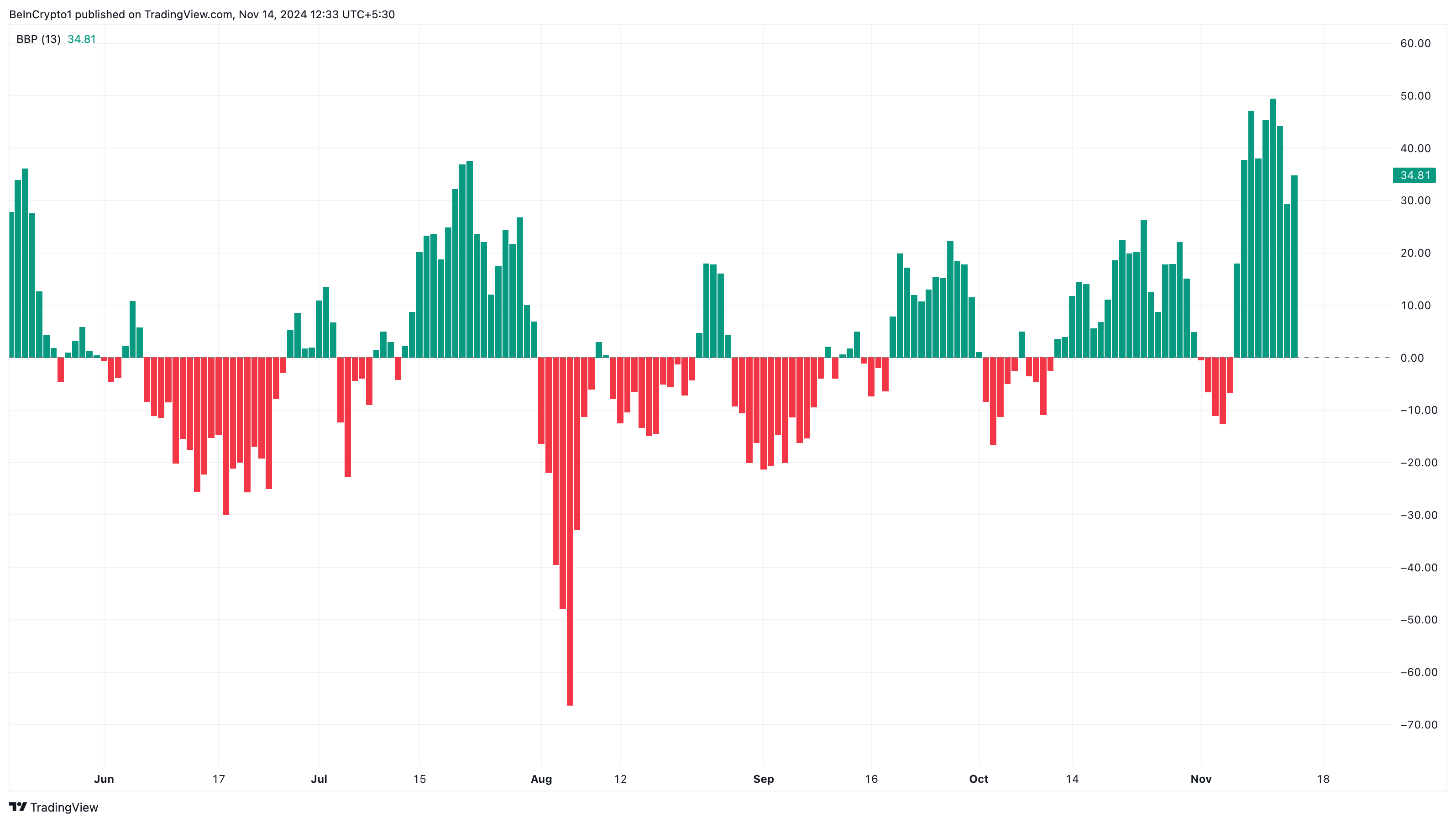 Ayrıca, günlük grafik analizi de bu görüşü destekliyor, özellikle Bull Bear Power (BBP) göstergesinin mevcut durumu nedeniyle.